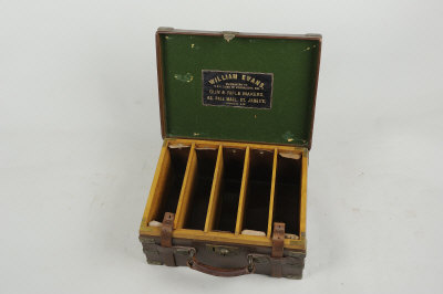 A BRASSBOUND OAK AND LEATHER CARTRIDGE MAGAZINE