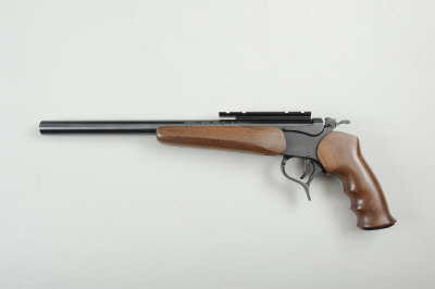 THOMPSON CENTER ARMS A .22 LR MATCH MODEL SINGLE SHOT PISTOL, NO. G19374 14-inch barrel fitted with a picatinny rail, the frame with central hammer and opening lever, smooth walnut grips, nitro proof, in its nylon holster S5 |