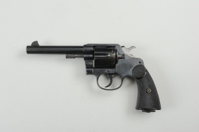 COLT A .455 NEW SERVICE REVOLVER, NO. 95959 5 1/2-inch barrel, the solid frame and swing-out cylinder, with impressed rampant colt trademark and Enfield inspector's marks, chequered composition grips, left grip repaired, lanyard loop, nitro proof S5 |
