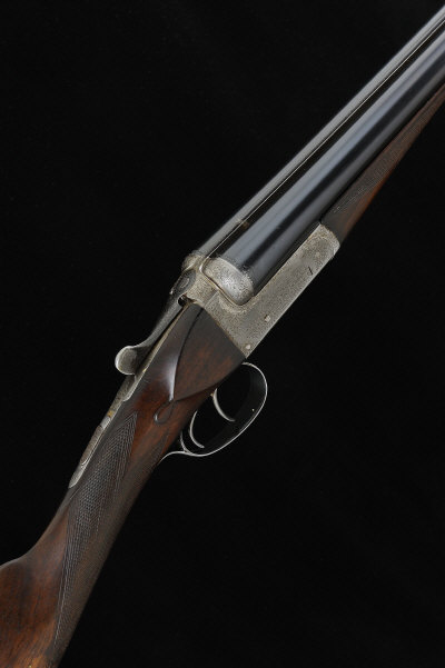 HENRY ATKIN A 12-BORE BOXLOCK EJECTOR GUN, NO. 3369 28-inch barrels with 2 1/2-inch chambers, about 1/4 and full choke borings, the frame and top lever with fine scroll engraving, 14 1/2-inch figured stock, 6lb. 3oz., nitro proof, in a converted mahogany case S2 |