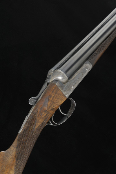 30-inch sleeved barrels with 2 3/4-inch chambers, about true cylinder and 3/8 choke borings, top extension, the frame and top lever with fine scroll engraving and retaining some original hardening colour, the maker's name signed within a scrolling banner, 16-inch well figured stock including 1 3/4-inch extension, 6lb. 7oz., nitro proof