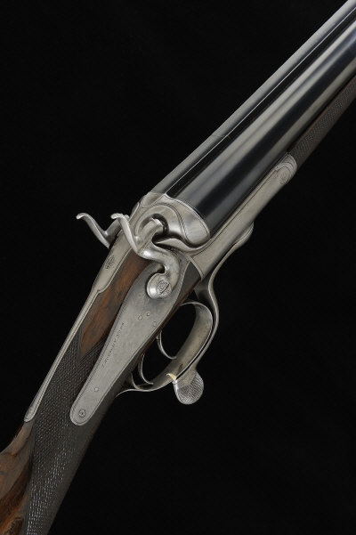 T. HORSLEY AN 8-BORE HAMMER GUN, NO. 2403 34-inch chopper-lump barrels with 4-inch chambers, about full choke borings, the rounded frame, non-rebounding back locks, hammers and rotary underlever with border engraving and retaining faint traces of original hardening colour, 14 1/4-inch figured stock including rubber recoil pad, 13lb. 14oz., nitro re-proof S58 |