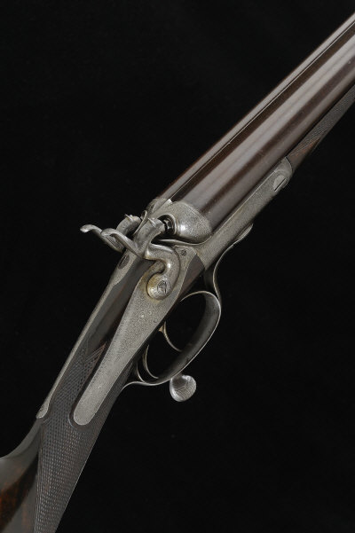 STEPHEN GRANT A 12-BORE HAMMER GUN, NO. 3449 30-inch damascus barrels with 2 1/2-inch chambers, about true cylinder borings, the rounded frame, rebounding backlocks, hammers and rotary underlever with fine scroll engraving, 14 1/4-inch well figured stock with engraved heel and toe plates, 7lb. 2oz., black powder proof, bores slightly marked S2 |