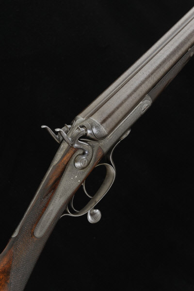 STEPHEN GRANT A 12-BORE HAMMER GUN, NO. 3181 31-inch damascus barrels with 2 1/2-inch chambers, about true cylinder borings, the rounded frame, non-rebounding backlocks, hammers and rotary underlever with fine scroll engraving, 14 1/2-inch well figured stock with engraved steel butt plate, 7lb. 1oz.. black powder proof, in its maker's brassbound oak and leather case S2 |