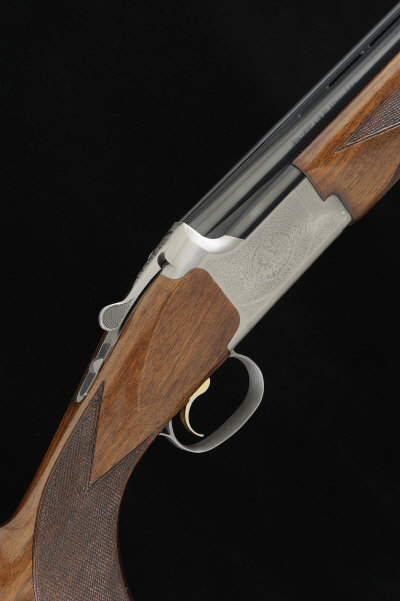 30-inch barrels with 3-inch chambers, interchangeable choke tubes, machined ventilated rib, the frame and top lever with fine scroll decoration, selective single trigger, non-automatic safety catch, 14 1/2-inch figured stock with pistol grip and rubber recoil pad, 7lb. 10oz., Belgian nitro proof for steel shot, in its maker's plastic case with spare chokes, etc