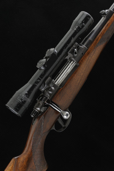 BRNO A .243 BOLT-ACTION SPORTING RIFLE, NO. 7252509577 23 1/2-inch barrel with ramp fore sight and folding rear sight, the receiver mounted with its telescopic sight, bolt with side safety, magazine with hinged base plate, the half length stock with pistol grip and maker's butt plate, 14-inch pull, 8lb. 8oz., nitro proof S1 |