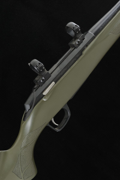 20-inch barrel threaded for a sound moderator, the receiver with scope rings, bolt with side safety, detachable box magazine, the half length synthetic stock with pistol grip, cheekpiece and rubber recoil pad, 14 1/2-inch pull, 7lb. 5oz., nitro proof