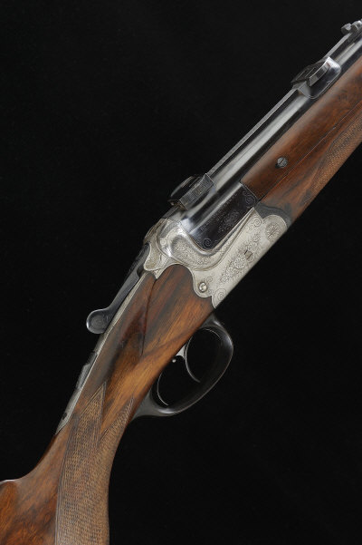 MERKEL A 7X65R/16-BORE OVER AND UNDER COMBINATION GUN, NO. 23920, RETAILED BY ADOLF LOESCHE, HANOVER 26 3/4-inch barrels with machined solid rib, with folding rear sight and bases for claw mounts, the scroll back frame and top lever with scroll engraving, crossbolt extension, cocking studs, 14-inch figured stock with semi pistol grip, cheekpiece and ribbed butt plate, 7lb., German nitro proof, re-jointing recommended S1 |