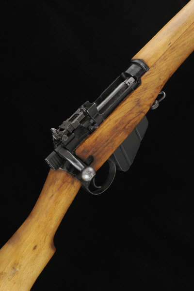 A .22 NO.9 MK 1 BOLT-ACTION TRAINING RIFLE, NO. PH53720 25-inch barrel with ramp fore sight, the receiver with folding aperture rear sight, detachable box magazine (platform removed), the full length stock with hand guards and brass butt plate, 13-inch pull, 9lb. 6oz., nitro proof S1 |