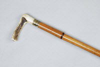 DUMONTHIER A FRENCH .410 WALKING STICK GUN 27-inch barrel with 2 1/2-inch chamber about true cylinder boring, with realistic cane covering, spur trigger and stag horn handle, French nitro proof