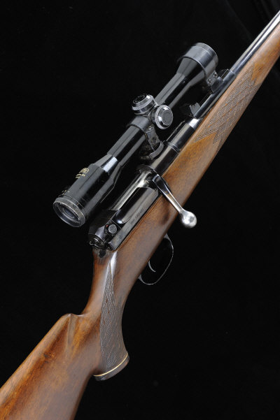 MAUSER A .270 MODEL 66 BOLT-ACTION RIFLE, NO. G05490 23 1/2-inch barrel with ramp fore sight and folding rear sight, and mounted with a Zeiss Diatal-DA 4x32 telescopic sight with quick detachable claw mounts, the two piece bolt with crossbolt safety, the half length stock with pistol grip, cheekpiece and rubber recoil pad, 14-inch pull, sling swivels, 8lb. 7oz., German nitro proof |