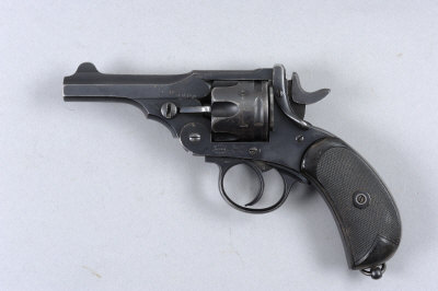 WEBLEY A .455 MARK II SERVICE REVOLVER, NO. 40891 4-inch barrel with ordinance markings and South African registration mark W4600, frame with stirrup catch and lanyard ring, chequered composition grip, nitro proof