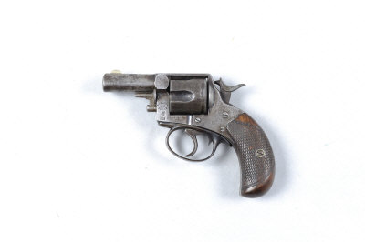 WEBLEY A .38 NO.2 MODEL REVOLVER, NO. 76710 2 1/4-inch barrel, the solid frame with winged bullet trademark and five-shot cylinder, chequered walnut grips, black powder proof, worn overall, ejector rod broken, trigger return spring at fault S5 This lot will not be available for viewing in London. It can be viewed by appointment at our office in West Sussex. |
