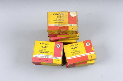 KYNOCH 80 RNDS OF .450 (3 1/4-INCH) NITRO EXPRESS AMMUNITION metal covered soft-nosed bullet, 480 grns (20 rnds solid)