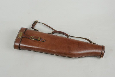 BUD SHAUL A LEATHER "ELEGANT LEATHERS" LEG-OF-MUTTON GUN CASE with compartment suitable for 28-inch barrels |
