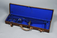 A BRASS BOUND LEATHER GUN CASE,
