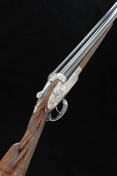 The gun was built using the finest outworkers working in the London Trade at the time. The gun was proofed in 1986 and was likely finished circa 1988/9. Alan Brown has subsequently become one of the most renowned English gun engravers and his speciality is highly detailed game scenes of the type featured on this gun. The self-opening action used is the Henry Atkin variant of the classic Purdey Beesley design.
