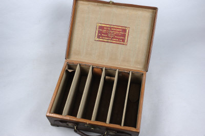 W. W. GREENER A BRASSBOUND LEATHER CARTRIDGE MAGAZINE for about 500 cases, leather straps and cloth covered dividers |
