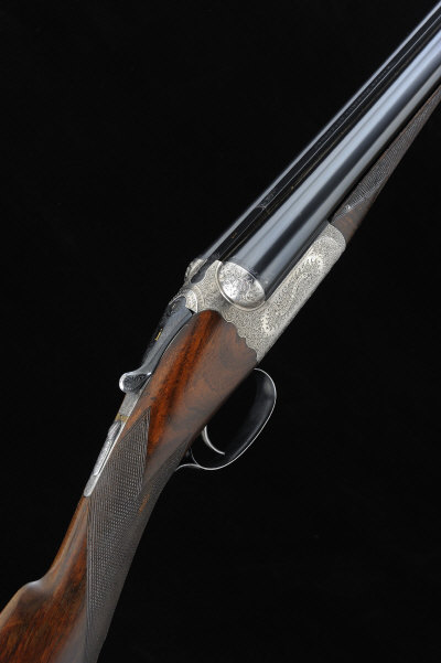 WESTLEY RICHARDS A 12-BORE SINGLE TRIGGER HAND-DETACHABLE BOXLOCK EJECTOR GUN, NO. 16238 28-inch replacement barrels by the maker, with 2 1/2-inch chambers, about 1/2 and 3/4 choke borings, doll's head extension, the scroll back frame and patent top lever with fine scroll engraving, the maker's name signed within a banner, top lever engraved in gold, removable action base plate revealing the hand detachable lock, selective single trigger, 14-inch figured stock, 6lb. 10oz., nitro proof, single trigger and ejectors require regulation, in its maker's brassbound oak and leather double gun case S2 The maker confirms that the gun was built circa 1903. |