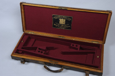 with compartments for 30-inch barrels, re-lined, one brass corner missing