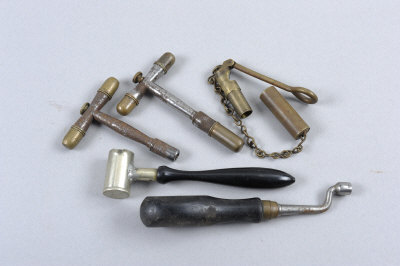 comprising: 2 nipple key combination tools, a further nipple key, powder measure and bore mirror (5)