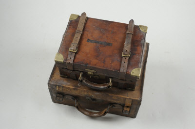 for about 500 cases, void interior; together with a further leather cartridge magazine, for about 250 cases, distressed overal (2)