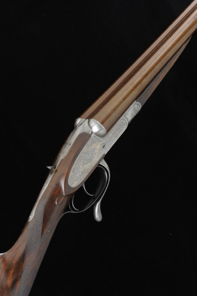 The gun conforms to T. Woodward patent 651 of 1876 and was formerly the property of the well-known writer Geoffrey Boothroyd.