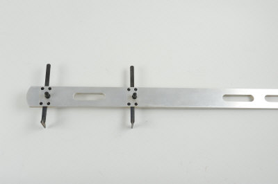 A GUNMAKER'S BEND AND CAST MEASURING STICK the aluminium stick with graduated sliding rules to measure bend and cast |