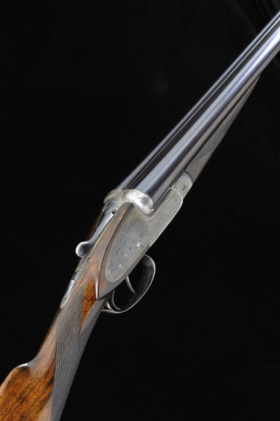 A BELGIAN 12-BORE SIDELOCK EJECTOR GUN, NO. 3158 26 3/4-inch barrels with 2 3/4-inch chambers about 1/2 and 3/4 choke borings, mid extension, the frame, locks and top lever with border engraving and retaining some original hardening colour, 15 1/4-inch well figured stock including 1/2-inch ebonite extension and recoil pad, 7lb., Belgian nitro proof |