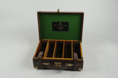 HOLLAND & HOLLAND A BRASSBOUND OAK AND LEATHER CARTRIDGE MAGAZINE for about 250 cases, with leather straps and oak dividers |