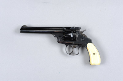SMITH & WESSON A .44 RUSSIAN DOUBLE ACTION FIRST MODEL REVOLVER, NO. 40937 6-inch barrel with patent dates to 1880, six-shot cylinder, well re-finished overall, smooth ivory grips with age shrinkage and some repairs |