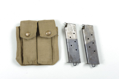 COLT A RARE PAIR OF .455 ELEY MAGAZINES FOR THE COLT 1911 the two-tone bodies with lanyard loops, in their British canvas pouch |
