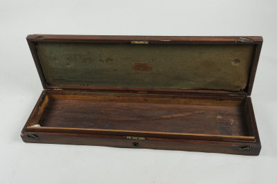 J. PURDEY A RARE EARLY MAHOGANY GUN CASE, CIRCA 1820 the void interior with faded baize lined lid bearing the first type J. Purdey label with the address 4 Princes Street, Leicester Square, from J. Manton |
