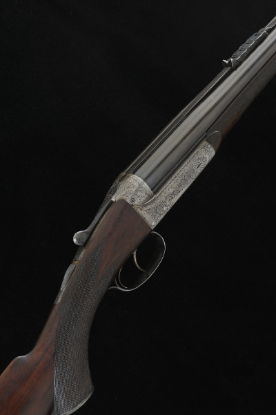 W. J. JEFFERY & CO. A .303 BOXLOCK EJECTOR SPORTING RIFLE, NO. 14768 (9599) 26-inch barrels with raised fore sight, file-cut top surface with folding leaves to 500, doll's head extension, the frame and top lever with scroll engraving, 14 1/2-inch figured stock with pistol grip and chequered steel butt plate, 8lb. 10oz., nitro proof, in its maker's leather case S1 |