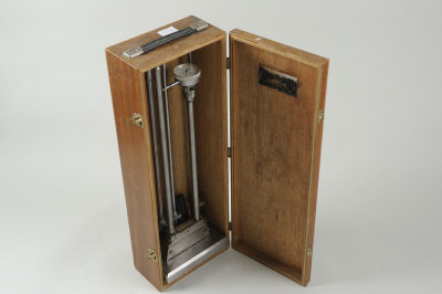 T. F. WOOD & SON A BARREL WALL THICKNESS GAUGE of standard pattern, with five interchangeable barrel rods, in its maker's wooden case |