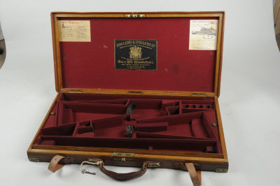 with compartments for 27-inch barrels, the charge card numbered for guns 22440 and 22677
