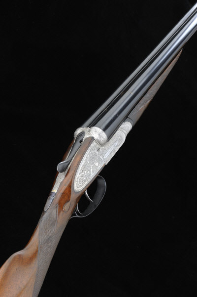 J. McCRIRICK & SONS A 12-BORE SIDELOCK EJECTOR GUN, NO. 78505 28-inch sleeved barrels with 2 1/2-inch chambers, about improved cylinder and 1/2 choke borings, mid extension, the frame, locks and top lever with bouquet and scroll engraving, the maker's name signed within a panel, 14 1/4-inch figured stock, 6lb. 9oz., nitro proof, in a leather case with James Kirk trade label |