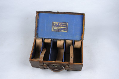 for about 500 cases, with leather straps and dividers