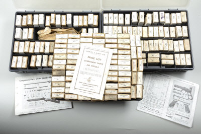 the many boxed parts suitable for Senior, Junior and Mk I air pistols and Junior, Falcon and Mk III air rifles; together with the parts of a Crossman CO2 air pistol