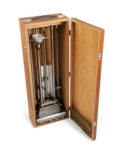 T. F. WOOD & SON A SCARCE BARREL WALL THICKNESS GAUGE with five rods to cover 10-bore down to .410 bore, in its wooden case with instruction sheet, etc