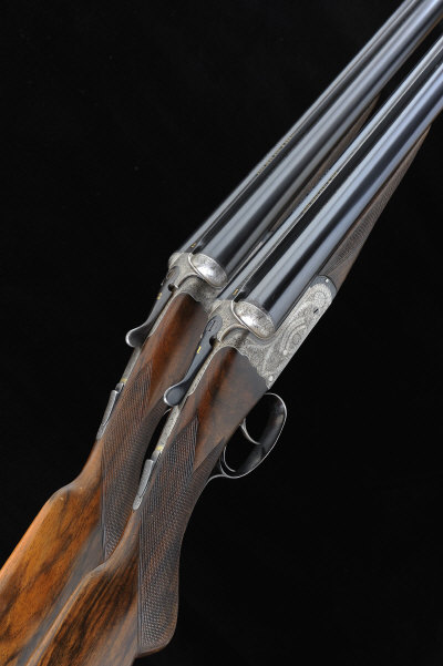 ARTHUR TURNER - WITHDRAWN A SCARCE PAIR OF 12-BORE (2-INCH) LIGHTWEIGHT BOXLOCK EJECTOR GUNS, NOS. 12152/3 26-inch replacement barrels by the maker, with 2-inch chambers, about 1/2 and full, improved cylinder and 1/4 choke borings respectively, file cut Churchill ribs, the scroll backed frames and gold numbered top levers with fine scroll engraving and retaining traces of original hardening colour, the maker's name signed within a scrolling banner, 13 5/8-inch figured stocks with pistol grips and slim recoil pads, 5lb. 4oz., nitro proof, lightweight leather case