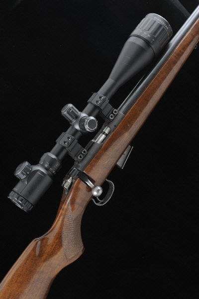 CZ A .17 HMR MODEL 452-2EZKM "AMERICAN" BOLT-ACTION SPORTING RIFLE, NO. A087908 20 3/4-inch barrel threaded for a sound moderator, the receiver mounted with a variable power telescopic sight, bolt with side safety, detachable box magazine, half length stock with pistol grip and rubber recoil pad, 13 1/2-inch pull, 8lb. 15oz., nitro proof S1 |