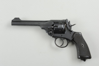 WEBLEY A .455 MK VI SERVICE REVOLVER, NO. 193638 6-inch barrel, the frame with inspectors' marks and dated '1916', chequered composition grips, lanyard loop, nitro proof S5 |