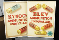 ELEY AN ATTRACTIVE PAIR OF PRE-WAR ADVERTISING POSTERS mounted on card, showing a variety of cartridges |