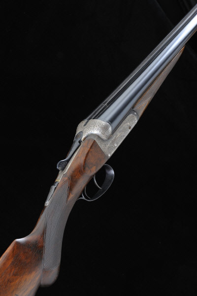 CHARLES BOSWELL A FINE 12-BORE BOXLOCK EJECTOR PIGEON GUN, NO. 18037 28-inch barrels with 2 3/4-inch chambers, about 3/4 and full choke borings, the broad file cut rib with crossbolt extension, the heavy frame with bold foliate scroll engraving within strapwork borders and retaining traces of original hardening colour, the maker's name signed with a scrolling banner, clipped fences, 15 1/4-inch figured stock with pistol grip and rubber recoil pad, 7lb. 6oz., nitro proof, canvas case with W. J. Jeffery trade label |