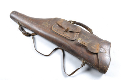 A LEATHER LEG-OF-MUTTON GUN CASE