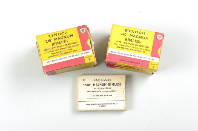 KYNOCH 58 RNDS .240 HOLLAND & HOLLAND RIMLESS MAGNUM SPORTING AMMUNITION in its maker's boxes; together with a quantity of primed and unprimed cases for reloading S1 |
