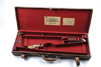 WILLIAM POWELL & SON A BRASSBOUND LEATHER DOUBLE GUN CASE with compartments blocked for 29-inch barrels |