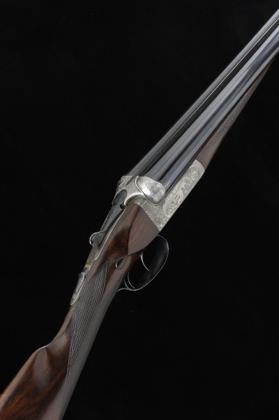 G. E. LEWIS & SONS A FINE 12-BORE BOXLOCK NON-EJECTOR WILDFOWLING GUN, NO. 15675 32-inch barrels with 3-inch chambers, about 1/4 and full choke borings, machined rib with crossbolt extension, the frame and top lever with fine scroll engraving surrounding scenes of duck and geese in flight, 14 1/2-inch figured stock including rubber recoil pad, 8lb., nitro re-proof S2 |