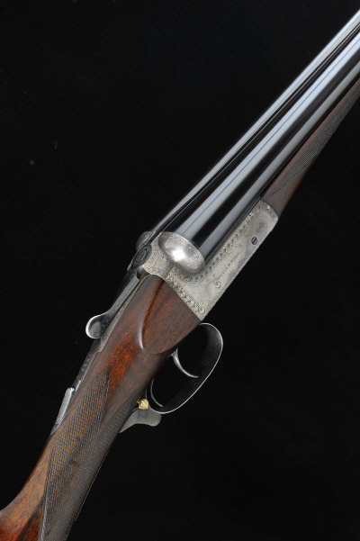 CHARLES HELLIS A 12-BORE BOXLOCK EJECTOR GUN, NO. 3315 28-inch replacement barrels by the maker, with 2 1/2-inch chambers, about 1/4 choke boring, top extension, the frame and top lever with border engraving and retaining faint traces of original hardening colour, the action base plate with crossed feather trademark, 15-inch figured stock including 1-inch extension, 6lb. 3oz., nitro proof S2 The maker confirms that the replacement barrels were fitted in 1962. |